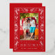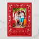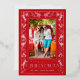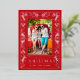 REAL FOIL! Botanical leaves and greenery surround your favorite photo with the words "MERRY CHRISTMAS" and your names in your choice of silver, gold or rose gold foil on a red background or whatever color you choose.
