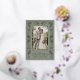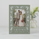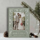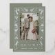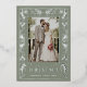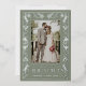 REAL FOIL! Botanical leaves and winter greenery surround your favorite photo with the words "MERRY CHRISTMAS" and your names in your choice of silver, rose gold, or gold foil on a sage green background.