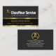 Over at the top corner is a gold chauffeur's logo (shaped into a speech box) you can use alongside the business name "Chauffeur Service" and a slogan caption which you can change. Near the base lies your prestigious name and the contact details. Lettering here are in faux gold.