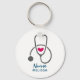 A personalised keychain with "Nurse" written in a cool script font.  A little pink heart and a simple grey stethescope illustration.