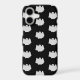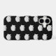 This modern, stylish iPhone 17 case features a bold all-over black and white pattern of cute ghosts on a crisp black background. Trendy and fun, this phone case will add flare to your day, at Halloween (spooky season) or year-round. Never lose your cell again with this distinctive, boo-tiful case. Design may be transferred to cases for other phone makes and models.