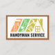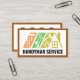 A white cover is encapsulated by a brown rectangular frame. Inside it is a creative building rooftop design using handyman tools. At the base of the card is your business name "HANDYMAN SERVICE" which you can change.