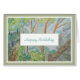 A lovely painting of trees and a forest trail with a warm birthday message for happy trails for the next year.