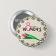 Stylish Happy Women's Day Custom Size Pin Button. A modern swirly border with a stylish Happy Women's Day on a light peach background with a pretty pink flower. Perfect thoughtful gift for women to wear. Looks beautiful on hats, lapels, clothing, scarves and even bags. You can customise your size and shape of the button.