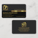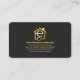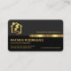 A retro grey and black column design is demarcated by a faux gold stripe near the centre. At the upper left corner is a creative gold "home lightning" logo you can use with its business name in the opposite direction. Towards the black layer, beneath the gold stripe lies your prestigious name, job title and the contact details with a slogan option in the opposite direction.