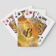 A monogram in elegant script, with a honey yellow abstract on the backdrop, inspired by beehives and honeycombs.