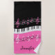 Stylish Hot Pink Black White Piano Keys and Notes Beach Towel