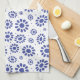 Stylish Indigo Blue and White Daisy Pattern Tea Towel