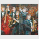 Stylish jazz band playing music on the scene, background is brown. Palette knife technique of oil painting and brush.