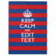 Have your personalised Keep Calm saying on this fine custom gift for yourself or for someone special on your list. Offered on a vibrant stylish red and blue stripes decor. Humourous or whimsical try on your creative words on the two editable text fields you see on this product page. Remember to use CAPITAL letters for best results.