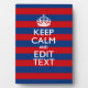 Have your personalised Keep Calm saying on this fine custom gift for yourself or for someone special on your list. Offered on a vibrant stylish red and blue stripes decor. Humourous or whimsical try on your creative words on the two editable text fields you see on this product page. Remember to use CAPITAL letters for best results.