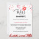 Elegant and classy Invitations to a Bridal Shower or Bachelorette Party with the phrase "KISS THE MISS GOODBYE."Miss in script letters on red lips.