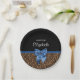Stylish Leopard Print Elegant Blue Bow and Name Paper Plate