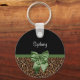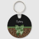 Stylish Leopard Print Elegant Green Bow and Name Key Ring