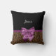 Stylish Leopard Print Elegant Purple Bow and Name Cushion