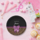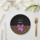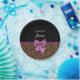 Stay in fashion with these stylish brown fur leopard print paper plates with an elegant purple ribbon tied into a chic bow. Personalise this modern and classy animal print design by adding your name. Flat printed image, not actual fur or ribbon.