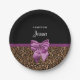 Stylish Leopard Print Elegant Purple Bow and Name Paper Plate