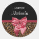 Stylish Leopard Print Elegant Red Bow and Name Classic Round Sticker