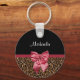 Stylish Leopard Print Elegant Red Bow and Name Key Ring