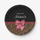 Stylish Leopard Print Elegant Red Bow and Name Paper Plate