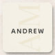 This stylish neutral beige coaster features a modern layout with vertical monogram in big type, and your name in simple black prominent horizontal type.