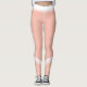 These light pink modern workout leggings feature an elegant white floral design on the ankles and calves and white stripes on the waistband.