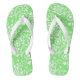 Bright and modern flip-flops printed with a stylish bo-ho chic pattern of paisley swirls and flowers. Fresh green and white pattern. Great fashion statement flip-flops for beach lovers, surfer girls, for modern women, travellers, and sportswomen. Treat yourself today to a pair of these super stylish flip-flops.