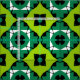 Seamless decorative geometric pattern featuring geometric shapes in lime green, black and white.