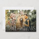 Show your appreciation with this modern and minimalist wedding thank you card. It features your favourite photo on the front with the phrase “love and thanks” on the bottom. The backside has room for a second photo and a message.