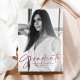 Modern graduation announcement featuring the graduate's vertical photo with "Graduate" in a stylish maroon script overlay. Personalise the front of the photo graduation announcement by adding the graduate's name, school name, and graduation year. The back of the trendy graduation announcement features a hand-drawn maroon and white pattern.