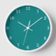 Stylish Minimalist Teal Wall Clock, an attractive wall clock featuring stylish white numbers on a plain teal colour background.
