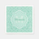 Stylish Mint Green Damask Monogram With Name Napkin