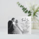 Budget, Simple Modern Elegant Handwritten Script Overlay Modern Photo Affordable Cheap Wedding Thank You Postcard. Stylish, minimalist wedding card template featuring 1 photo on the front and one (1) photo on the reverse side. "Thank you" text in a pretty hand lettering font calligraphy or typography white script photo overlay. NOTE: it is preferable to crop the front photo before upload, and the couple set to the left side on the photo. Easy to add your name and thank you message. If You need help or matching item, please contact to designer!