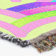 A quality printed throw has its advantages. This is a much finer weave throw than its loopier cousins, and though lighter, it is worth the investment for custom room accessorizing. The back is much prettier than the typical brown, and the fringe on the long sides very vivid, the selvage nicely done. Before photographing, I washed the throw in cold water, delicate, with a thicker woven throw the same size. On tumble dry low, this throw was dry in half the time as the other. This is a very practical quality if you use throws for furniture covers or to wrap up in frequently. The sleekness of the fabric makes it a great layer for accenting or protecting without the feeling of sitting on too much stuff. Perfect for napping or when you feel a light chill coming on. The color printing is beautiful and on this fabric, matched the design and color of my Photoshop image. This is an advantage for blending room fabrics and colors. The fringe on the short sides prints the colors from the design image and therefore varies from the side fringe. I streaked a white fractal line through the plaid pattern to give the illusion of weaving. This printed as crisp as an illusory thread, and put some white in the short side fringe, showing another advantage of print vs loomed- for artistic purposes, line lines, detail, and color integrity can be planned and preserved. My loomed throws have color limitations and more of a needlepoint texture. Print throws reproduce an exact image. The throw felt a little stiff straight out of the package, but this went away in the first delicate wash. Of course I searched the wash water for ink or bleeding and there was none.