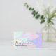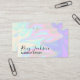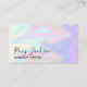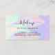 Gorgeous makeup business card design featuring colorful faux holographic texture and elegant calligraphy font.