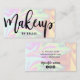 Gorgeous makeup business card design featuring colorful faux holographic texture and elegant calligraphy font.
