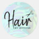 Gorgeous hairstylist round sticker design featuring colourful faux holographic texture and elegant calligraphy font.