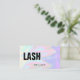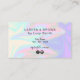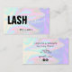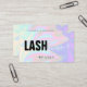 Gorgeous lash extensions business card design featuring colourful faux holographic texture and elegant calligraphy font.