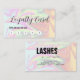 Gorgeous lashes & brows loyalty card design featuring colourful faux holographic texture and elegant calligraphy font.