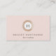 Sophisticated and glamourous, this retro inspired business card is perfect for entertainment professionals whether it be a fashion stylist or freelance makeup artist. Digital image of gold sequin framed circle emblem on blush pink background. There is no shine or texture to this card.