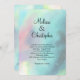 A wedding invitation with a cool and stylish abstract design. Faded watercolors mix and mingle to create the illusion of a space image. Green with hints of purple, yellow and light red blend together with a smattering of white dots and stars. An elegant artistic creation.