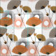 Stylish, modern mid century style pattern with pretty flower illustrations and gyroscope shaped circles; in shades of orange, taupe, black and white. A fabulous fabric design inspired by mid century retro styles; available in a choice of fabric styles and cut to lengths to suit your sewing and craft needs