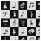 A great gift for any musician or music lover, this cool design features a modern and stylish black and white check squares pattern with various musical notes and musical instruments in alternating colours. It includes pianos, trumpets, drums and saxophones with music notes and treble clefs.