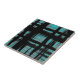 This interesting print looks like a painted plaid. Abstract and modern. Turquoise with hints of black throughout. Whether you want to use this tile as a little coaster or trivet for a drink or plate... or you want to go big with a kitchen backsplash or bathroom tile, is up to you! Do a full wall, border, or just an accent tile. Let your interior design dreams fly! Stylish Abstract Turquoise Black Plaid Pattern ceramic tile
