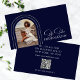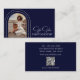 Stylish Modern Script Photo QR Code Photography Photographer Business Cards features a stylish and elegant golden script with your favourite photo inside silver arches with your business details and custom business website QR code on the reverse. On the reverse is your personalised contact details. Designed by © Evco Studio www.zazzle.com/store/evcostudio