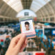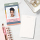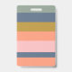 This stylish modern badge showcases a blend of navy blue, peach, coral, pink, and ochre stripes, designed with space for your name and photo. Its earthy tones add a professional yet personal touch, making it perfect for school, work, or business settings. Customise this badge for a modern, standout look in any environment.