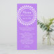 Long and skinny wedding table menu done in violet purple, with a white dotted circle, at the top. Personalise all the white text to suit your wedding reception menu. Lovely addition to your wedding reception.