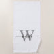 Stylish Modern White Grey Monogram Name Script Beach Towel