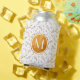 Stylish monogram gold berries pattern on white can cooler
