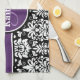 Stylish Monogram Purple Black White Damask Tea Towel